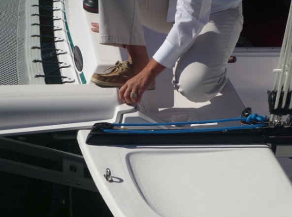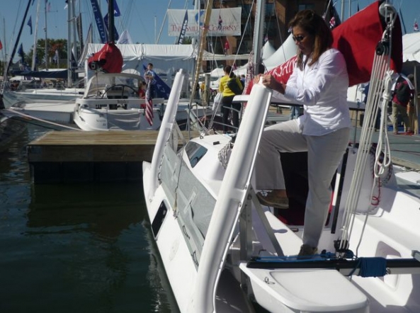 Alle Corsair Trimarane haben durch den Klappmechanismus eine Hafen- und Trailerbreite von 2,5m (Corsair Sprint bis Corsair 31) bzw. 3,0m (Corsair 37). Die Photoserie entstand anlässlich der Annapolis Boat Show an Bord eines Corsair Dash 750.